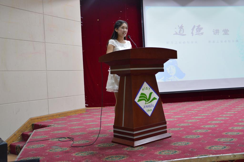 承办的第三十期“道德讲堂”在图教201举行。校学工部部长、学生处处长翟居怀、校后勤管理处副处长游红伟、我院党委书记冀红举、院党委副书记陈松玲及师生代表300余人参加了本次活动。