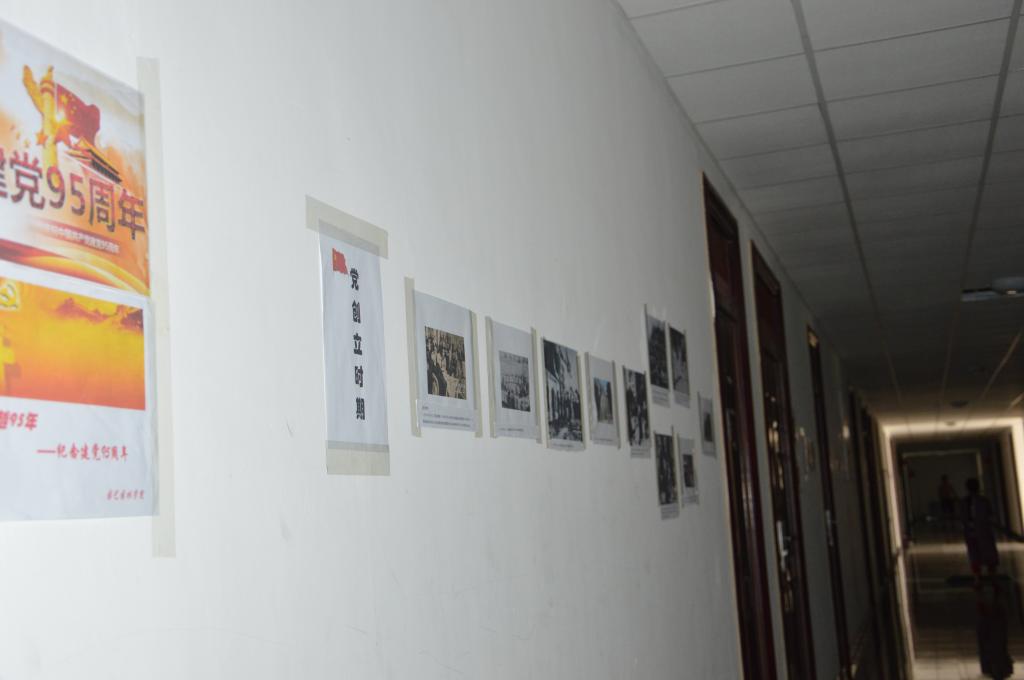 在科研楼B段二楼学生公寓走廊布置“穿越95年——重温党史为党庆生”专题活动。