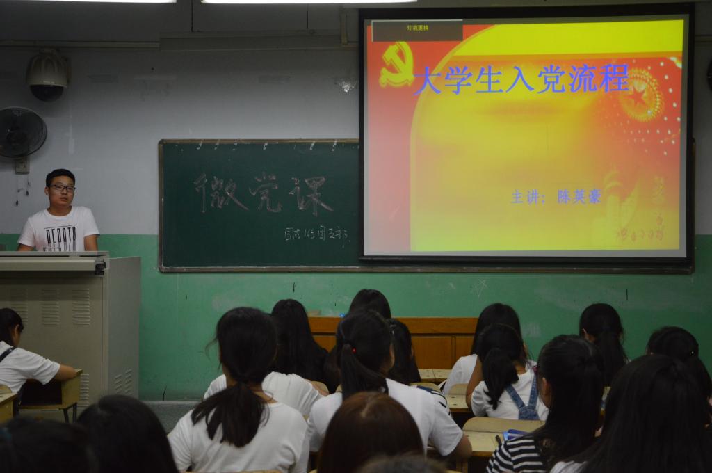 将“微党课”纳入本次入学教育计划中,从入党流程介绍、入党申请书基本格式到如何践行社会主义核心价值观、党史、党章党规的学习,题材丰富、内容充实,使新生入学之初就接受党性教育,培育其党性修养。