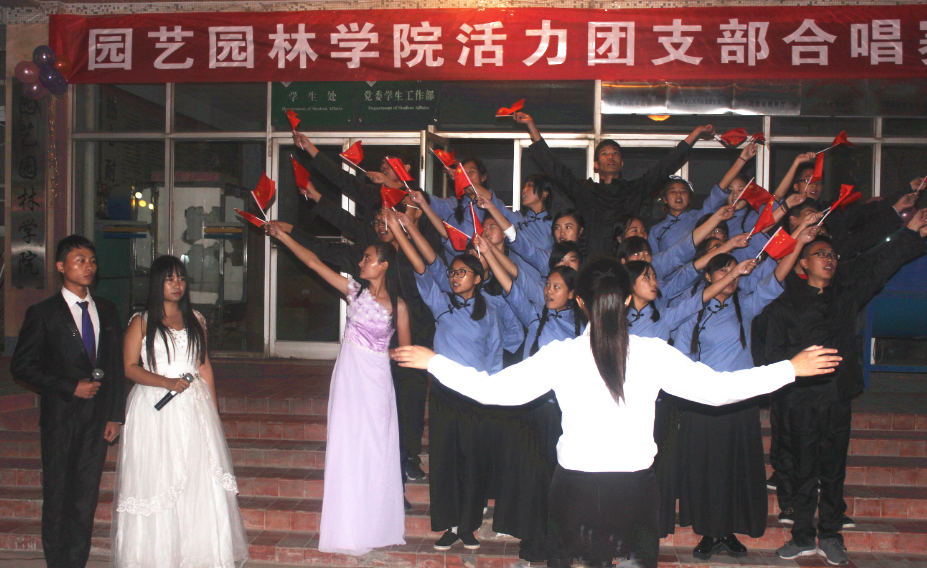 各团支部合唱两首歌曲,一首为必选曲目《河南科技太阳城现金网