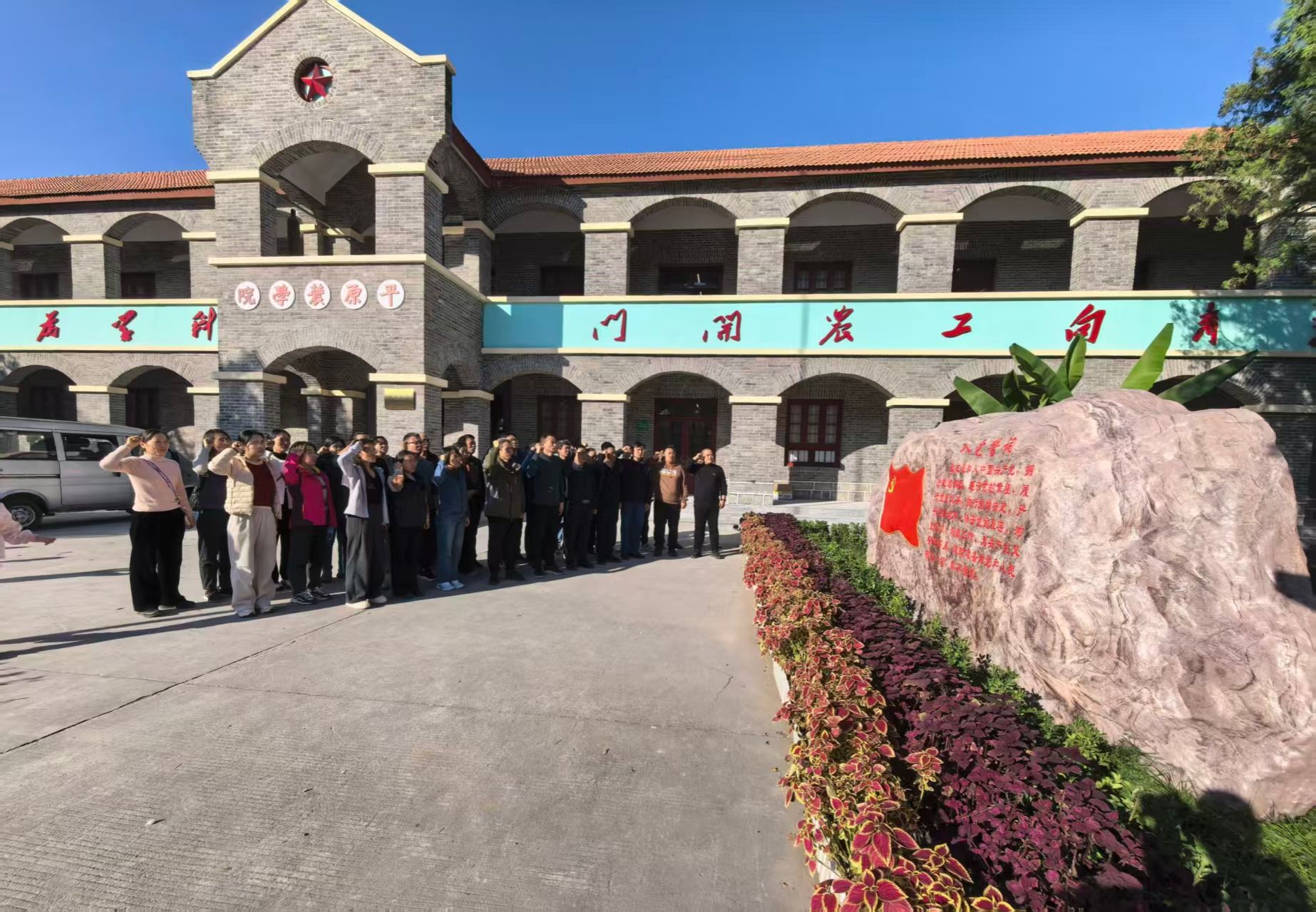 组织教工赴薄壁镇“志气林”、耿风泉抗战实物展览馆及百泉校区,开展“行走的党课”主题党日暨秋游活动。