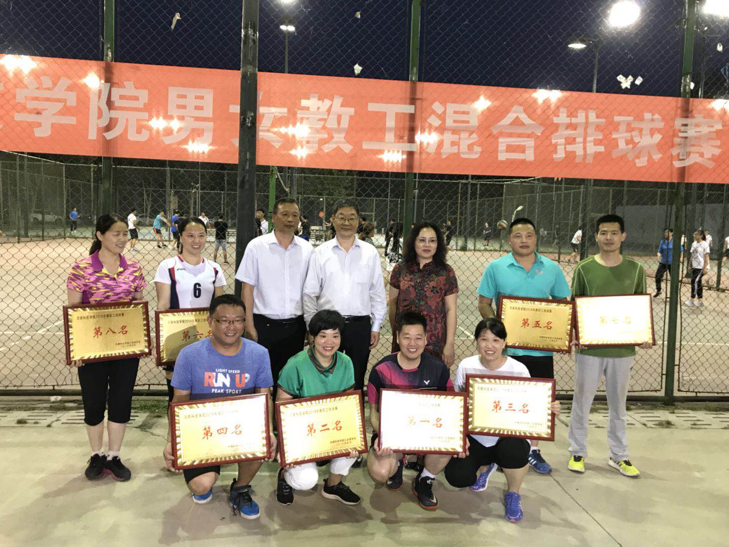 2018年教职工男女混合排球比赛中取得了全校第三名的好成绩!