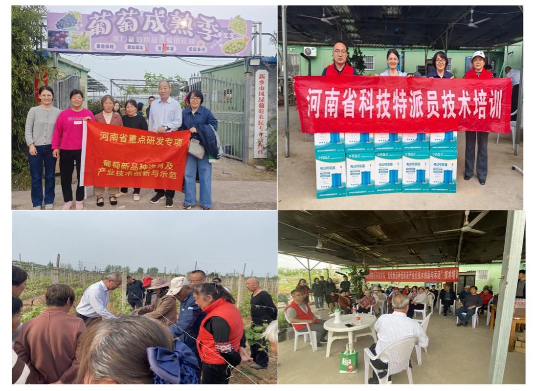 2026年4月14日,我院河南省重点研发专项“葡萄新品种选育及产业化技术创新与示范”课题组专家,联合省科技特派员李贝贝博士等技术人员,深入新乡市凤泉区南张门葡萄产区,开展春季葡萄管理科技服务,为当地种植户送上“田间课堂”。