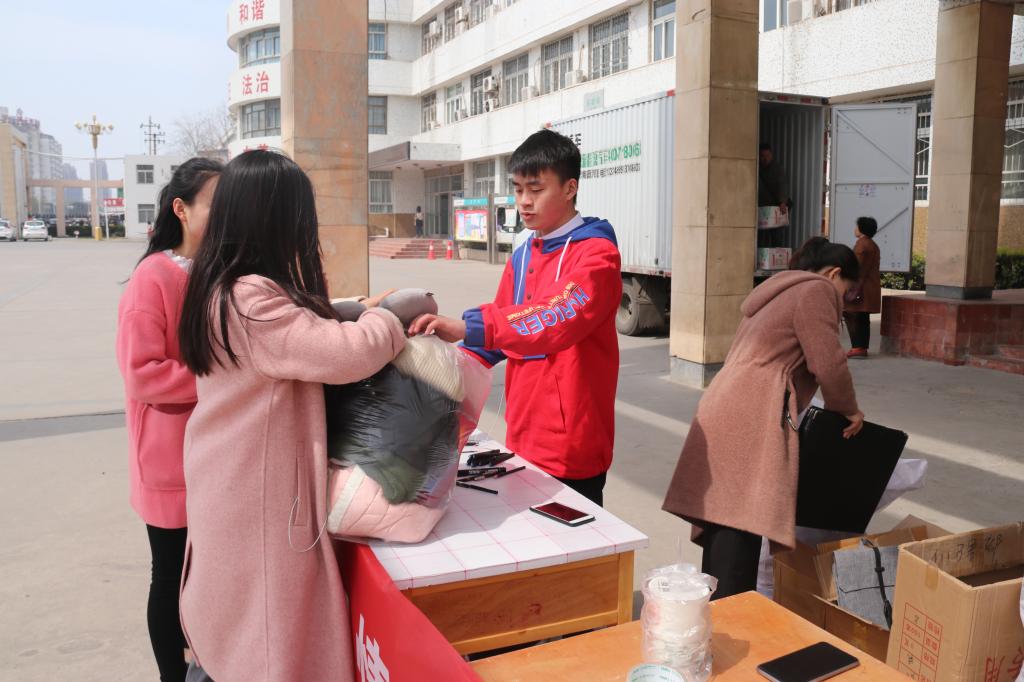 于致远广场前面向全体在校学生举办以“奉献爱心,传递温情”的旧衣捐赠活动。