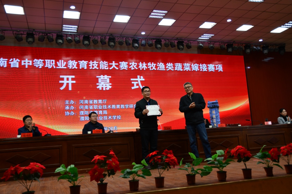2021年10月15~16日,2021年河南省中等职业教育竞赛活动暨河南省中等职业教育技能大赛农林牧渔类蔬菜嫁接赛项在濮阳县职业技术学校举办。我院李新峥教授作为河南省教育厅特派联络员、大赛评委组组长参加了本次竞赛的评判工作,评委组由河南科技太阳城现金网